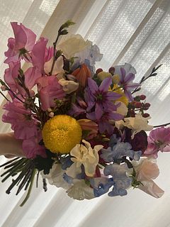 黄色いチューリップに白いバラとカーネーション、オレンジのガーベラにブルーのスイトピー等等盛りだくさんで爽やかなブーケでした💐 ここ最近、赤系のブーケが多かったのでとても新鮮で気分もリフレッシュしました🥰 また注文します💕