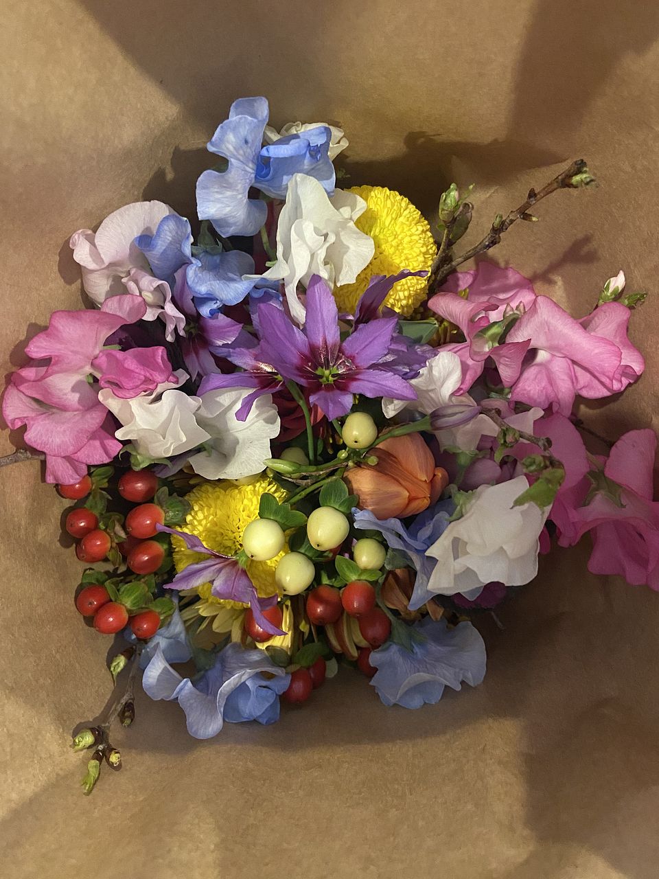 自分では選ばないビタミンカラーの薔薇なども入っていて楽しいです。 たくさんの種類の花々で心が躍ります。 ありがとうございました。