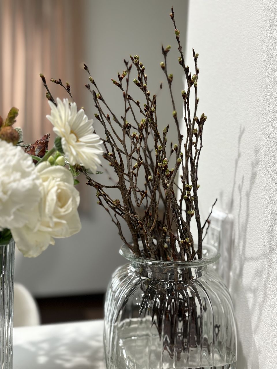 たっぷりの桜を花器にまとめて飾って、一足早くお花見気分を楽しんで🍡