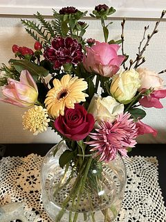 母へのプレゼントでした。色々なお花がまとまりよくアレンジされていて素敵なブーケでした。 とても喜んでいました。ありがとうございました。