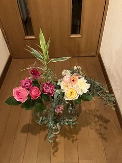 2つの花束が届きました。 一緒にしてみたら、ボリームがあってとても素敵で、色味もよかったです。 今日で5日目ですがまだまだ元気です😀