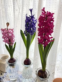 ヒヤシンスを育てるのは初めてです。 3つそれぞれどんな色のお花が咲くのか楽しみです。