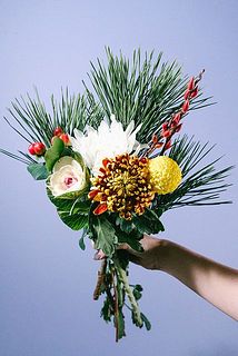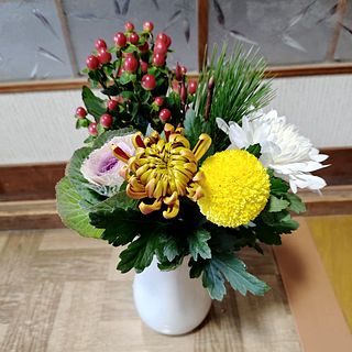 マム / ハボタン / 松 / ヒペリカム / 赤芽柳
