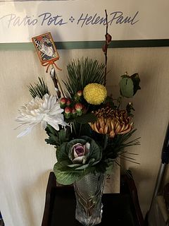 お花の質は、期待通りでした。 欲を言えば、水盤に活けるので、松はもう少し長さが欲しかったのと、お正月ブーケなのでヒペリカムより千両が良かったかなと思います。