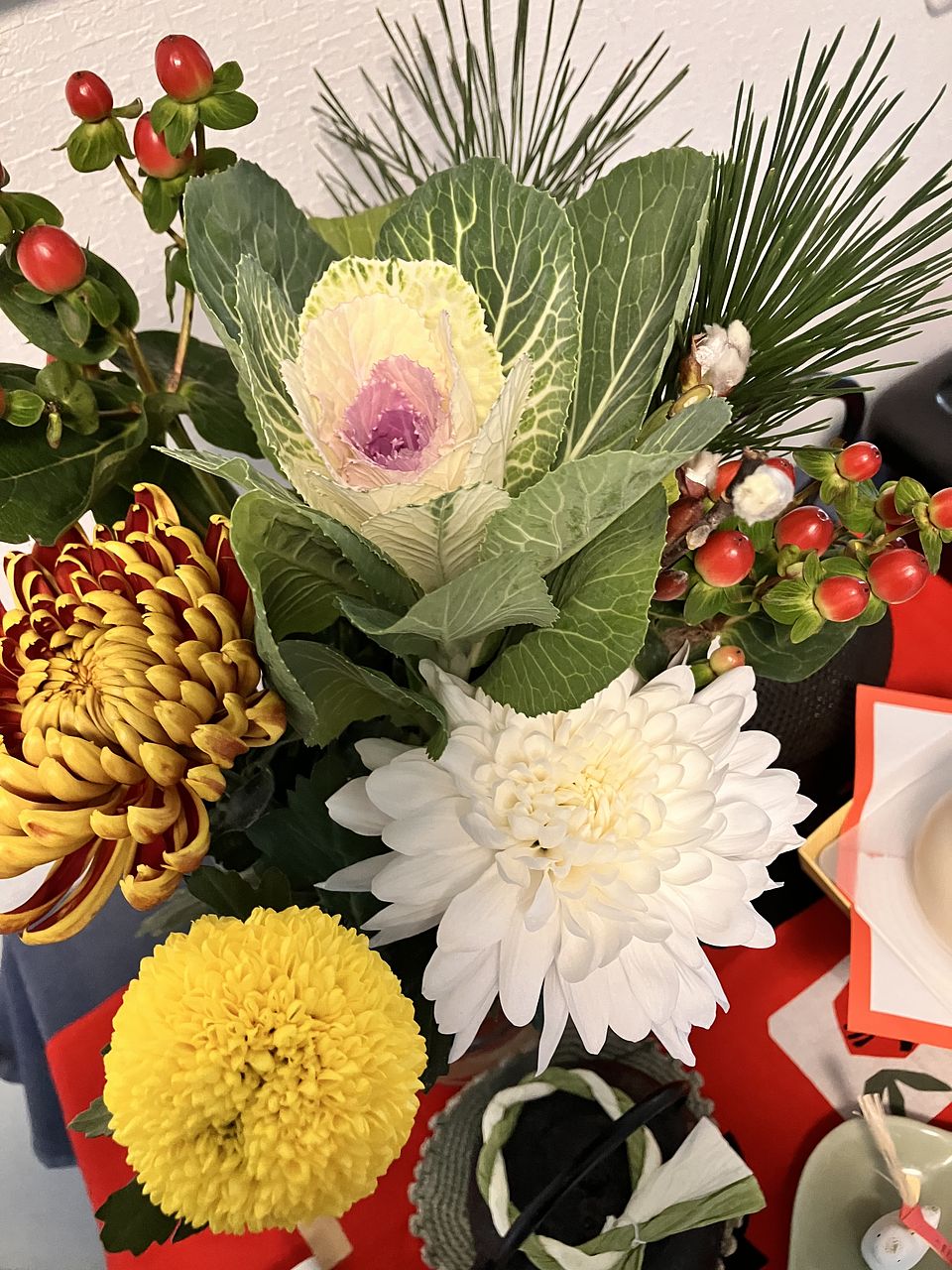 お正月に飾りたい松や葉牡丹、凄く良かったですが、、ただ、菊の花が一輪、花の首が折れてました、、 少し華やかさに、欠けてしまいましたが。 追加して飾ります。