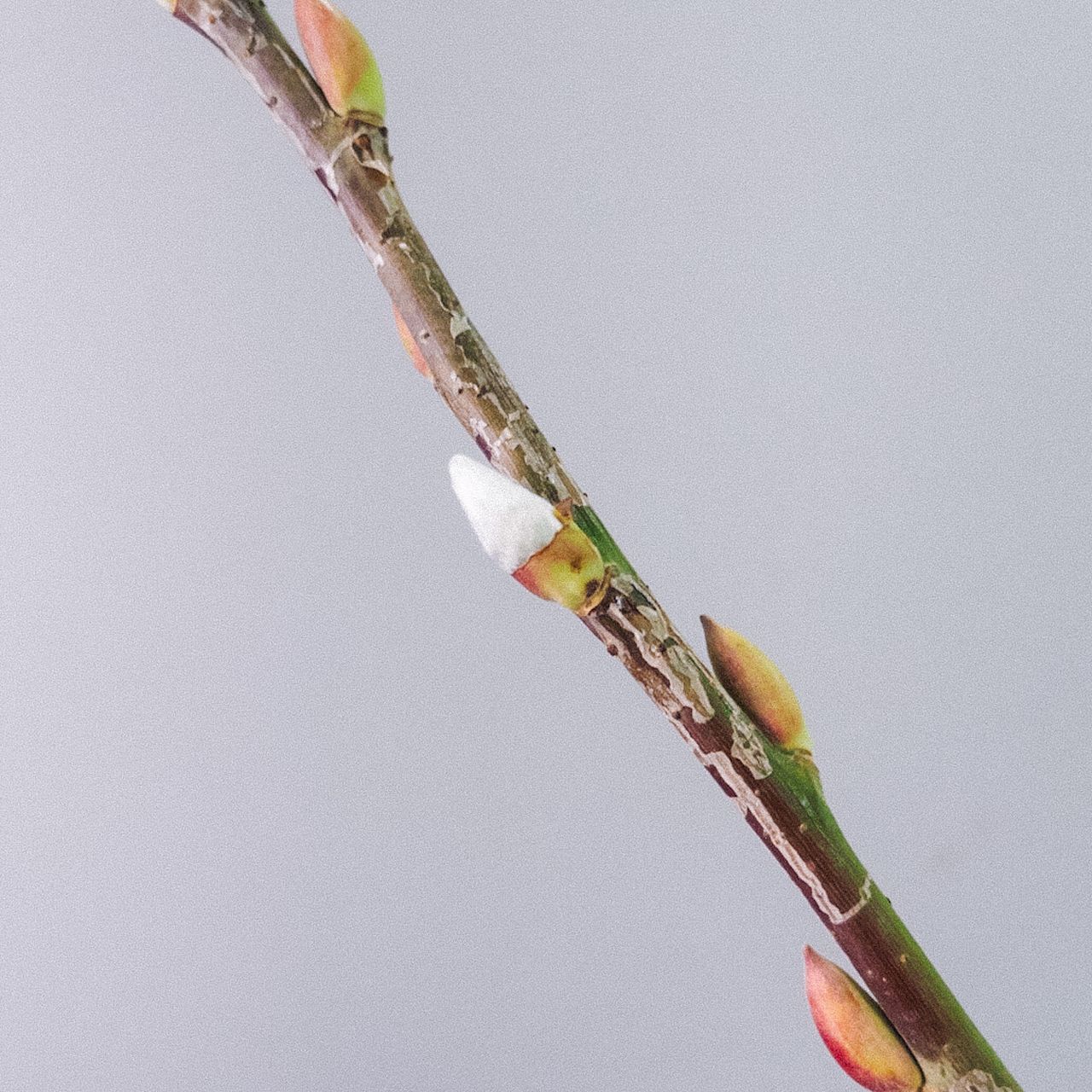 芽がむけると触り心地の良い起毛が出てきます。別名「猫柳(ネコヤナギ)」とも呼びます🐈