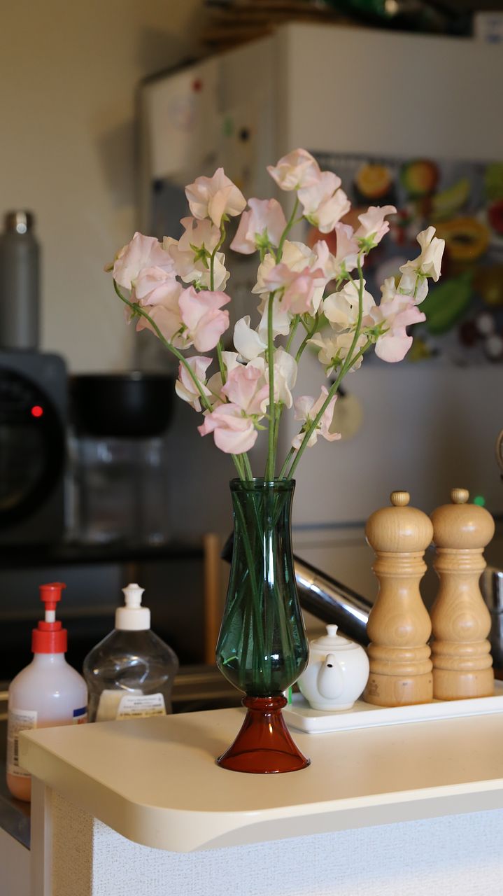 啓翁桜を9〜10本、スイートピーを7〜8本、合計16〜18本お届けします。2束まとめて飾っても、それぞれに分けて飾るのもおすすめ。