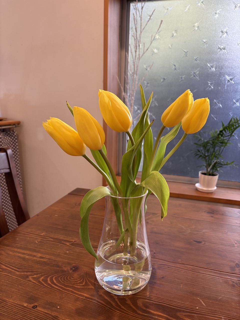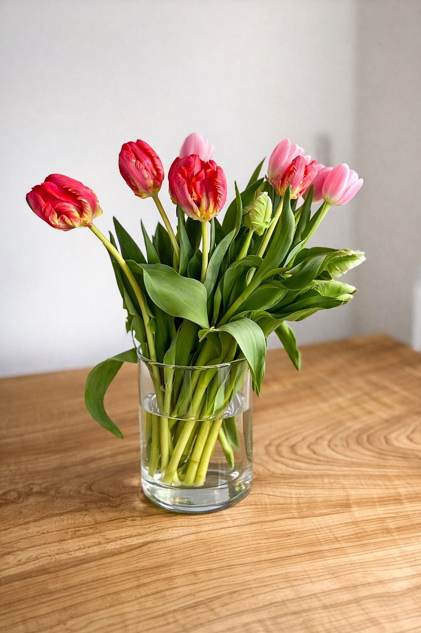 チューリップは、水の量少なめの「浅水」で活けるのがおすすめです。