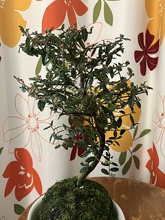 珍しい苔玉の「天皇梅」が入荷しました。梅の花に似ていますが、アオイ科でオーストラリア原産の植物なんです。