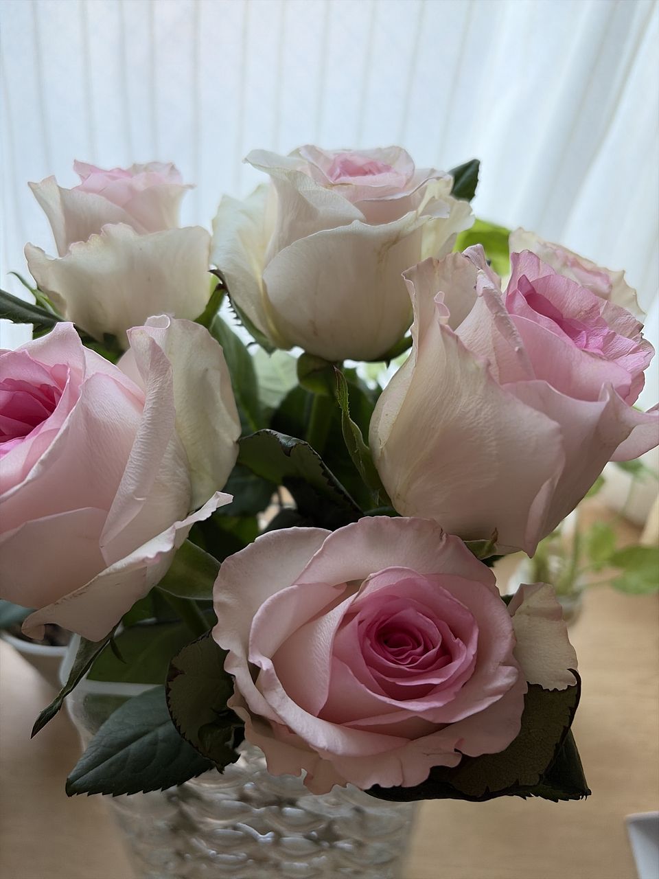 優しいピンクのグラデーション。大ぶりのバラが6本届きました。嬉しいです