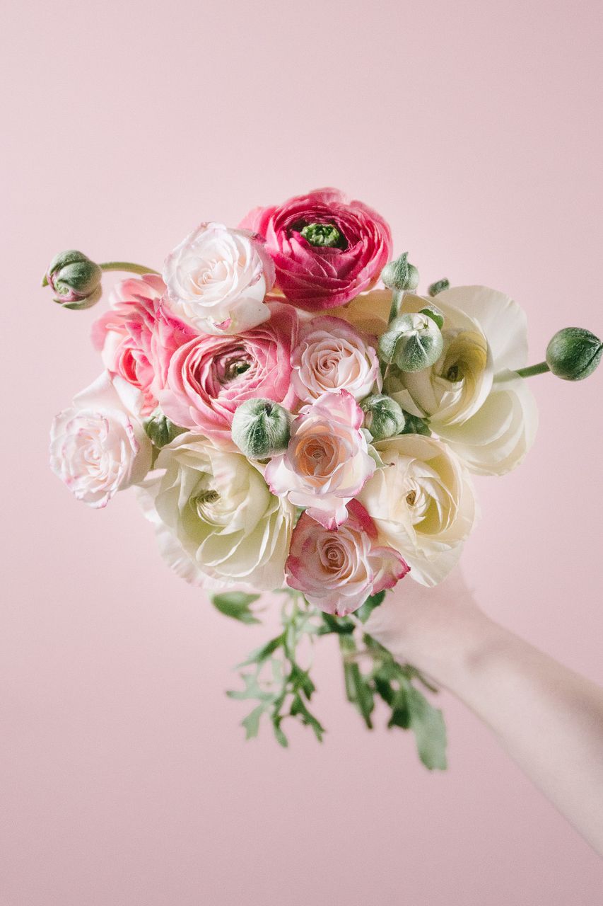 甘いピーチミルクのようなカラーリングのラナンキュラスとバラを贅沢に束ねました🍑🐮