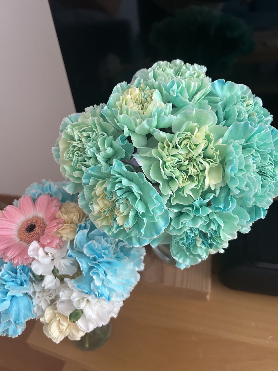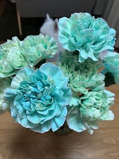 初めは色が濃い…と思いましたが、満開になった時本当にかわいいミント色になりました。3週間経ってもまだ枯れずに咲いてます🎵