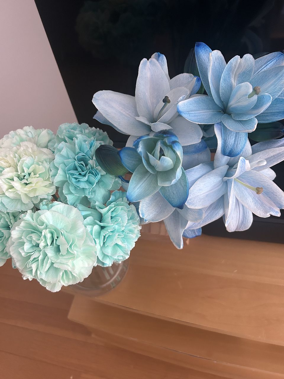 青いゆりが1番楽しみにしていたお花だったので残念です。昨今の暑すぎる夏はお花の宅配には向かないかもしれませんね。