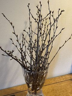 蕾で咲いていないのでまだ本当のところはわかりませんが、たくさんの花が開き始めたら新春の花の少ない雪国で幸せな気持ちになると期待しています🌸 とりあえずざっくり花瓶に入れて様子を見ているところです。