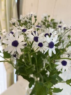 ホワイトとネイビーのカラーが 珍しく、とても優しさと凛とした感じがとても綺麗です。 ボリュームもあり、これだけ飾っても華やかです! ありがとうございます!