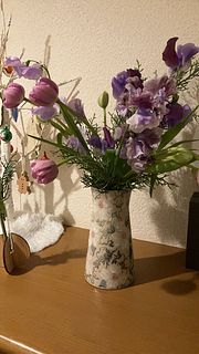 スイートピーの花が3個取れてしまったのは残念でしたが、緑物は青々をしていて良い香りがしました。 優しい色合いに大満足。折れてしまったスイートピーは、小さい花瓶に入れて飾りました。 トイレにも飾りました。大満足です。
