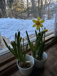小ぶりで愛らしい姿が魅力の「テータテート」は、早春にいち早く花を咲かせるミニスイセン🐤