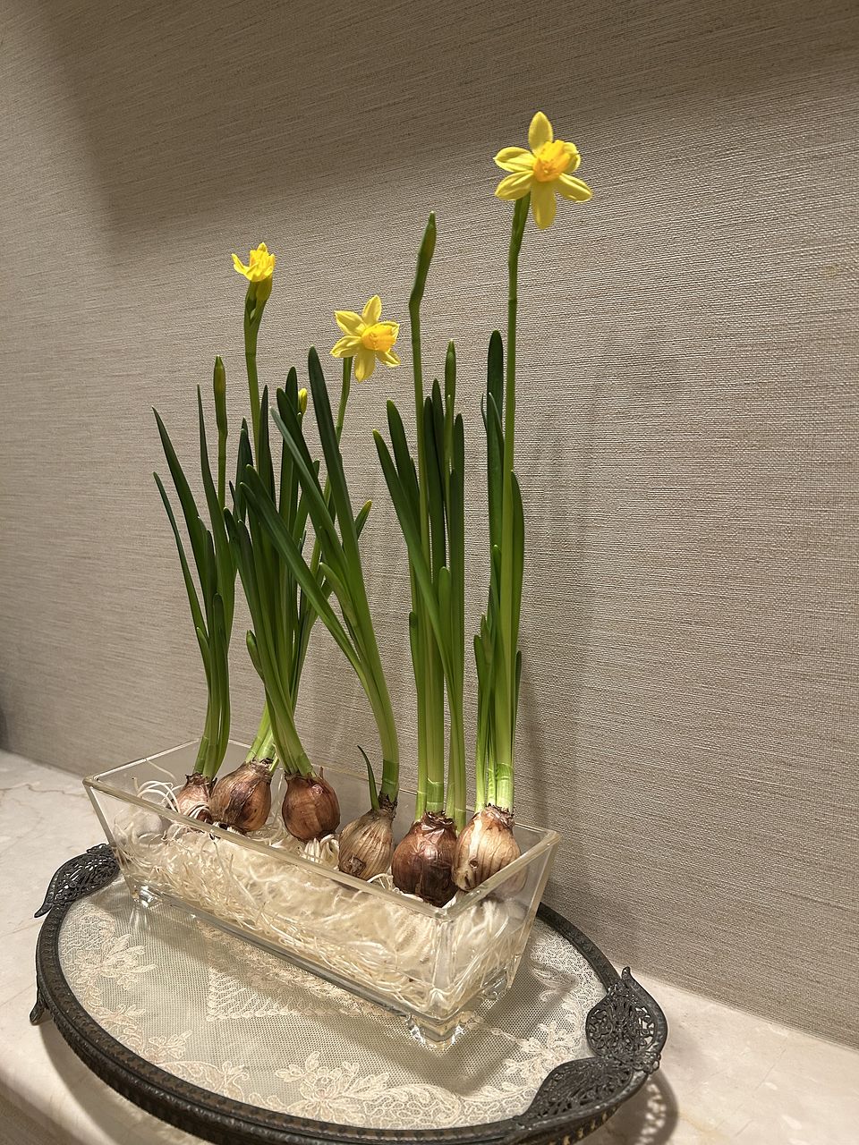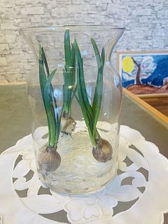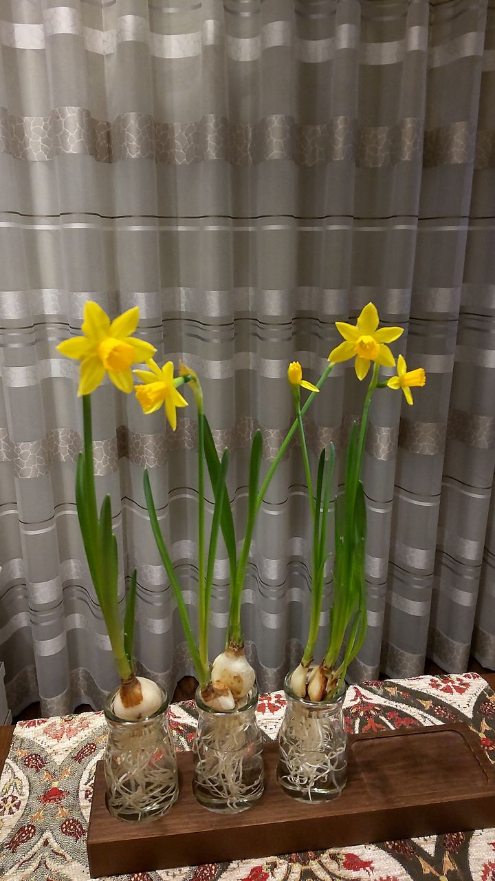 とても良い球根が届きました 届いて3日目には一輪咲き、翌日には2輪目が♪ 毎日一輪ずつ咲き始めています まだ外は雪景色。家の中は春です