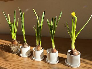 6球入ってました 咲きかけの物が2球 水栽培で楽しめるので、一気に部屋の中に春がきたようです 手軽で長持ち とても良かったです