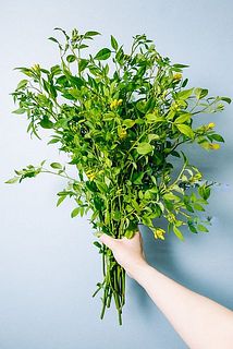 - お花の咲く枝物はお水が大好き。水が浸かる部分の葉は取り除いて、たっぷりのお水で活けましょう。