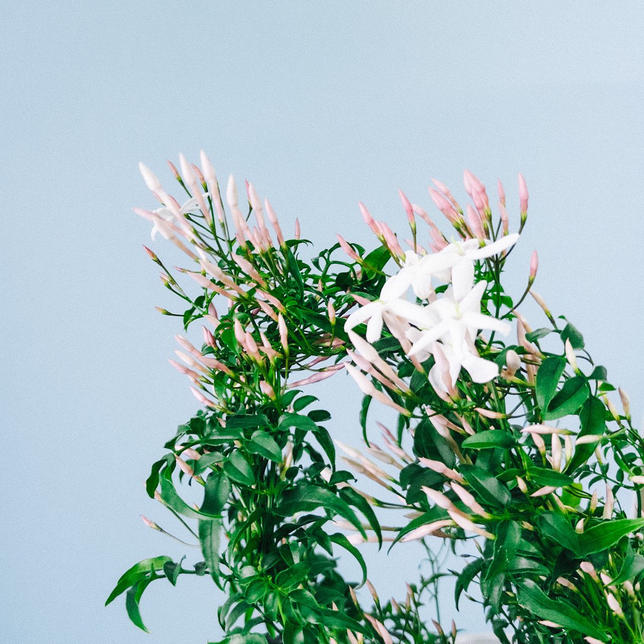 咲くと甘い香りのする「羽衣ジャスミン」が入荷しました🧁蕾は淡いピンクですが、咲くと白い小花がたくさん咲いてきてかわいいです😍