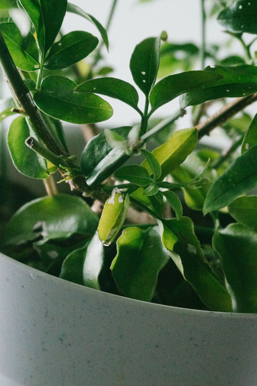 葉が少し変色しているものがございます。優しく摘み取ると新芽が出てきます。
