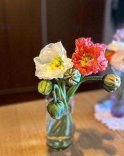 朝に蕾の状態で届いて、水揚げしてたらお昼には2輪開いてきました♪ 可愛いです🩷