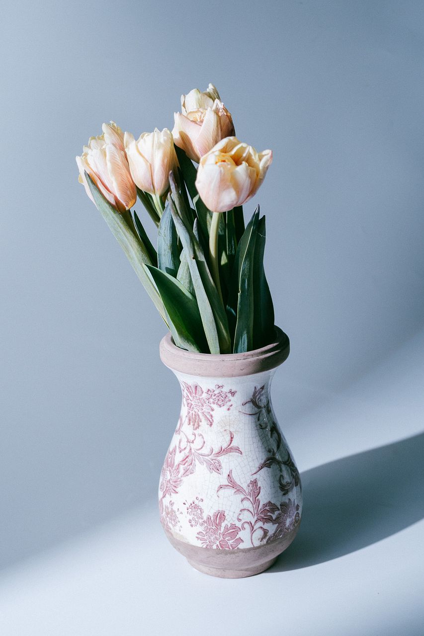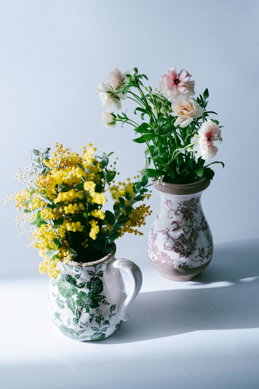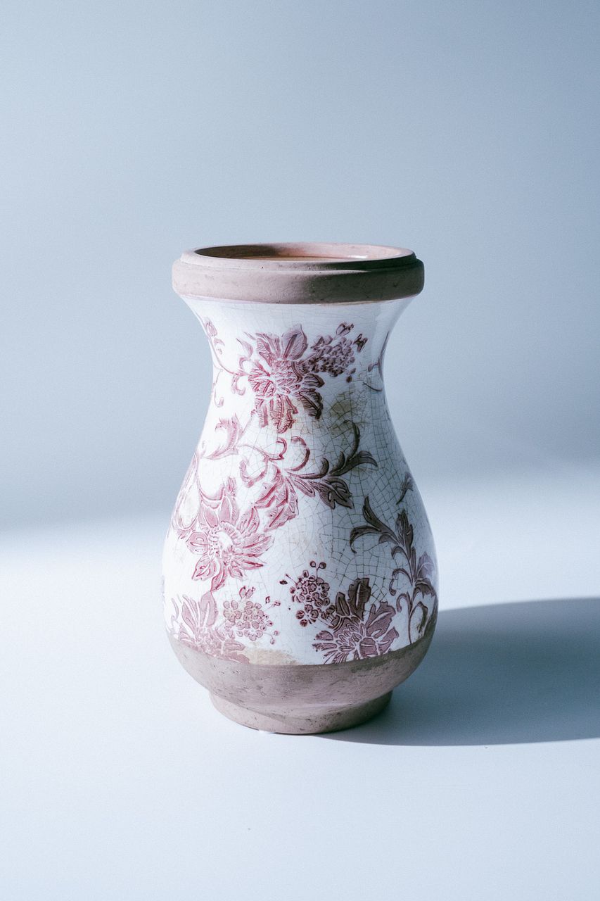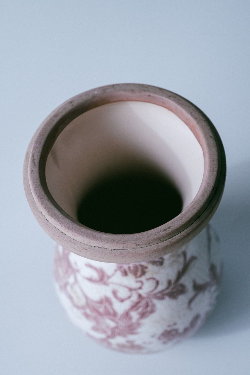 アンティーク調の花器は雰囲気が出る反面、扱いづらいものも多いですが、こちらは陶器製なので、気負わず日常に取り入れられるのも嬉しいところ。ラフに飾っても様になる花器です。