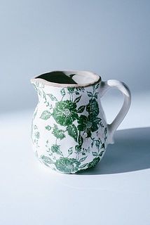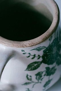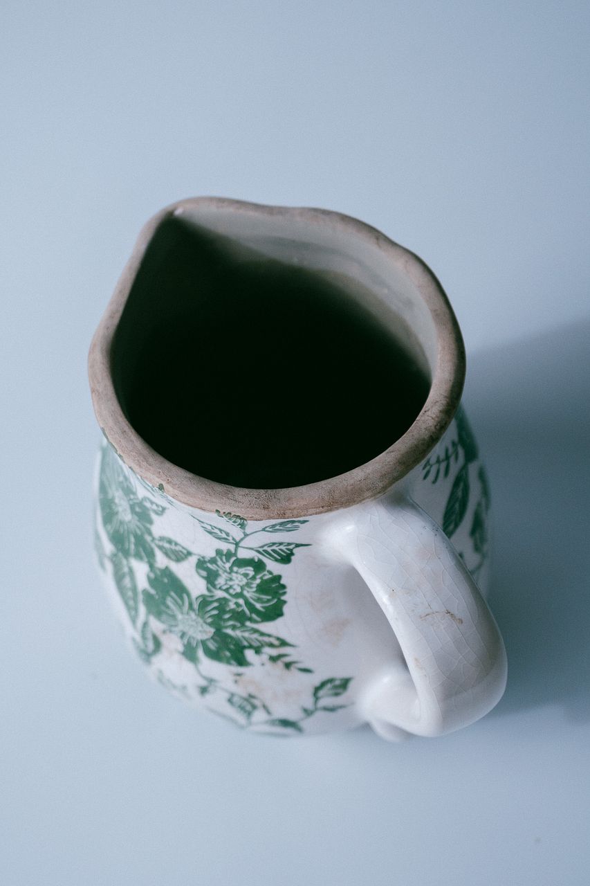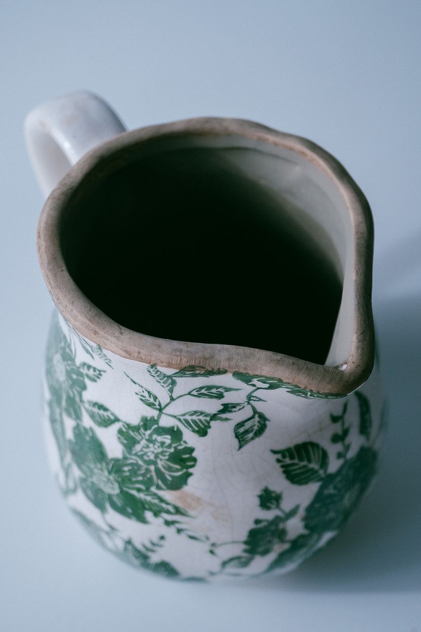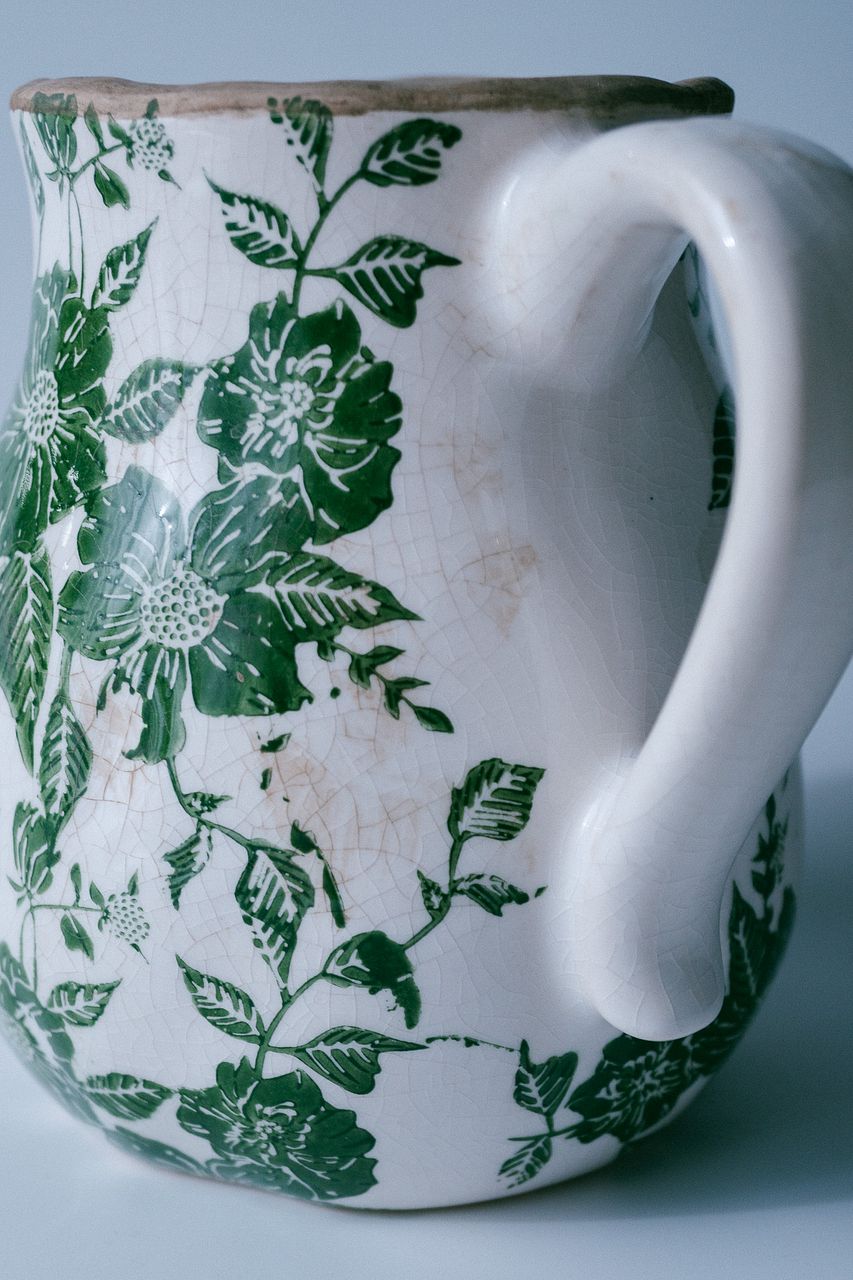 Renoir(ルノアール)🌿やさしいクリーム色の陶肌に、グリーンのボタニカル柄が映える、陶器製の花器です。