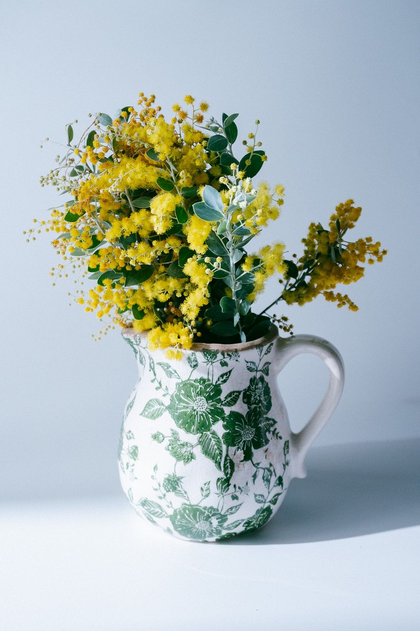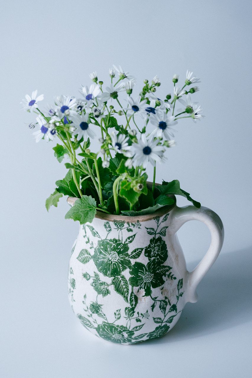 アンティーク調の花器は雰囲気が出る反面、扱いづらいものも多いですが、こちらは陶器製なので気負わず日常に取り入れられるのも嬉しいところ。