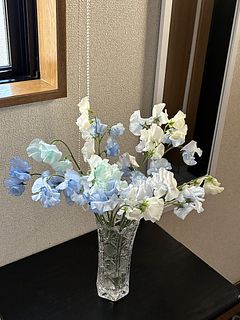 とにかく色が素敵過ぎます。 スイトピーは大好きな花ですが、その上に一番好きなブルーなんて、夢のよう。ウットリです。ずっと枯れないで欲しい。