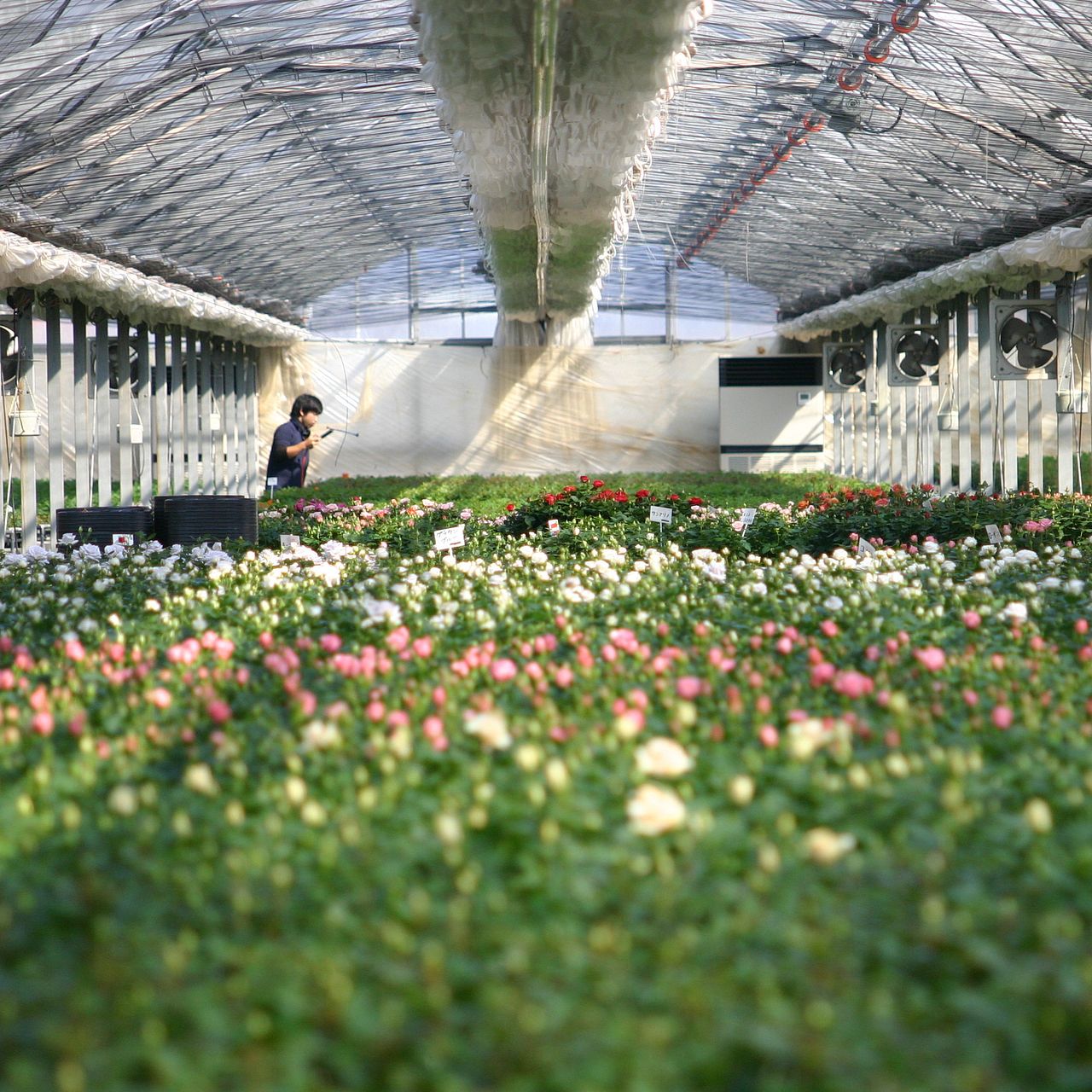 北欧デンマークから日本の風土に合う品種を厳選し、20,000㎡の農場で年間200万鉢ものポットローズを育てています。