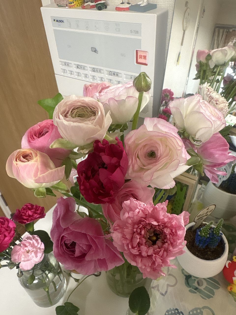 とても可愛らしいラナンキュラスが届きました! 花言葉のひとつに「合格」があります。 我が家の受験生のお守りになりますように。