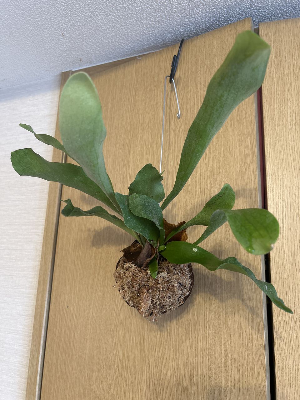 初めてのビカクシダ、可愛さにポチッとしましたが…届いたのは前面に飛び出してるタイプで…縦に伸びてるのが良かった…、…テンションダウンしましたが… しばらくすると縦に新葉が伸びてきてくれました!!嬉しい♡(ت ここから育てる闘志が湧きました!