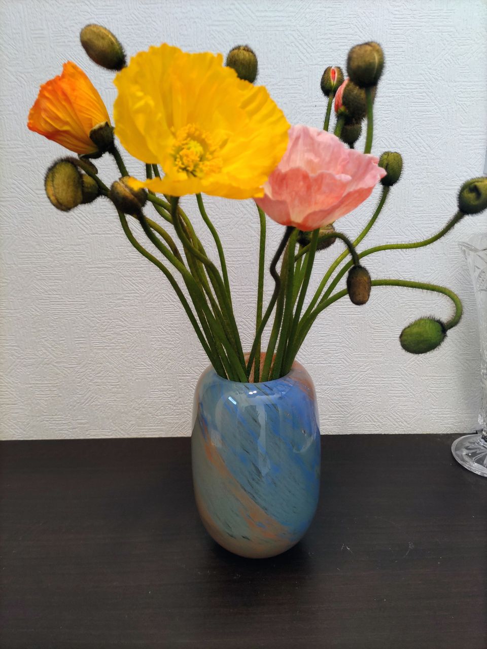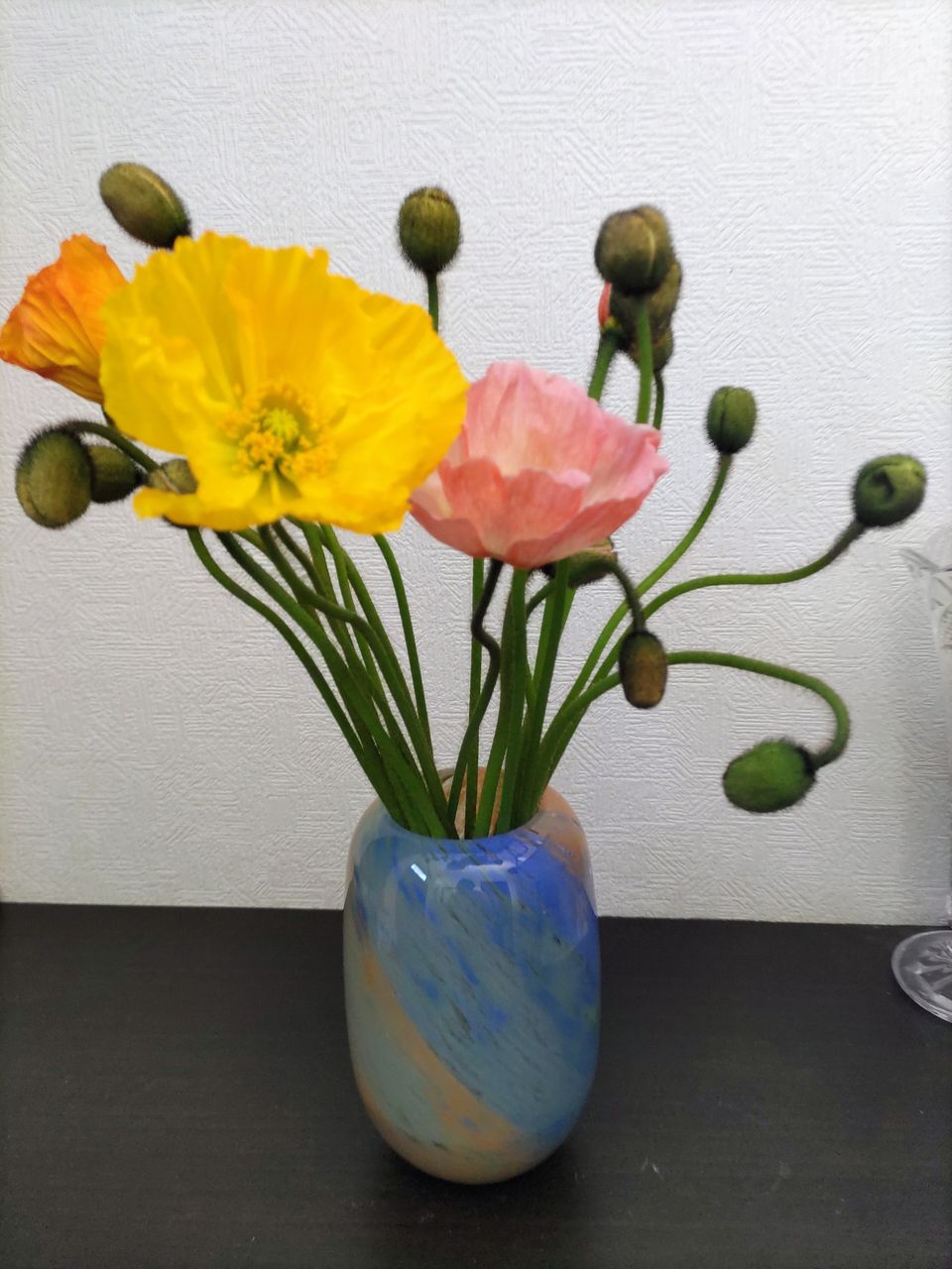 ポピーの季節がやってきました!おじぎをしたような蕾と、くしゃっとした花びらが愛らしいお花🌼