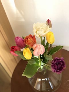 お正月のお花から春のお花に変わり、色とりどりのチューリップ可愛いです。香りは、ほとんどありませんでしたが開くのが楽しみです。