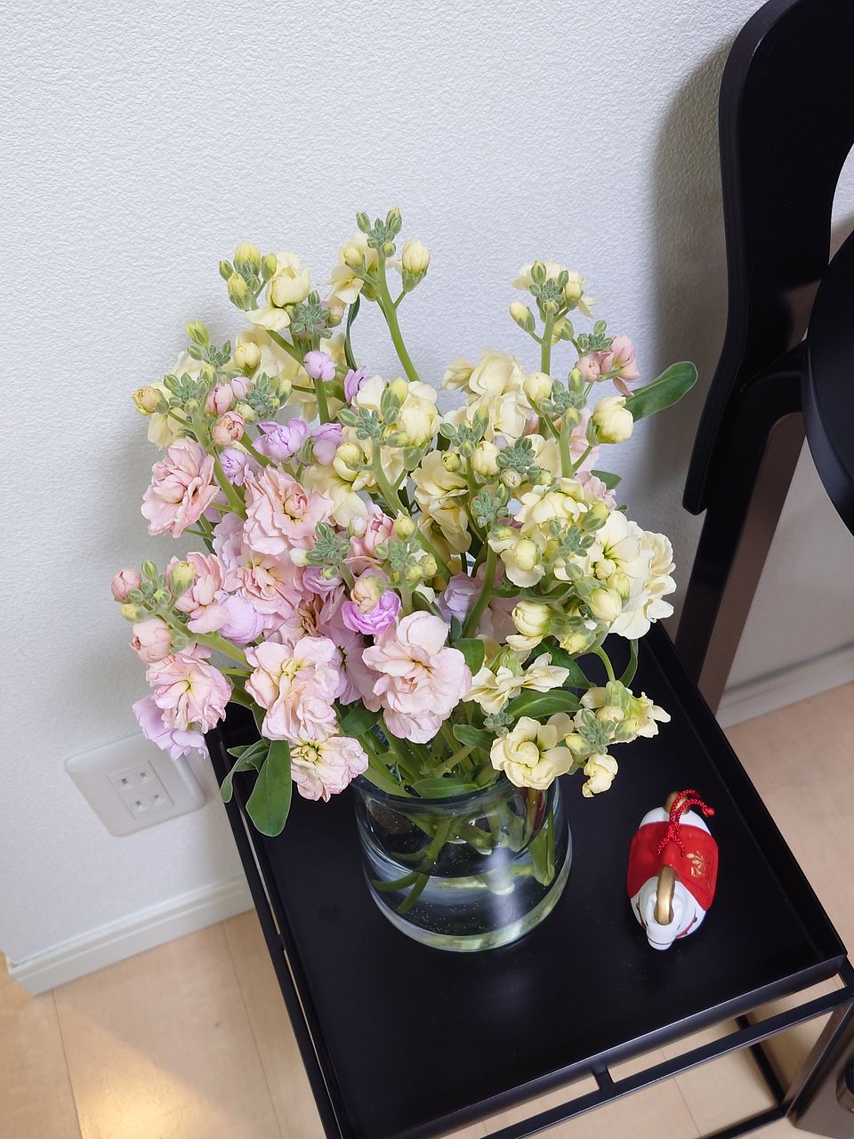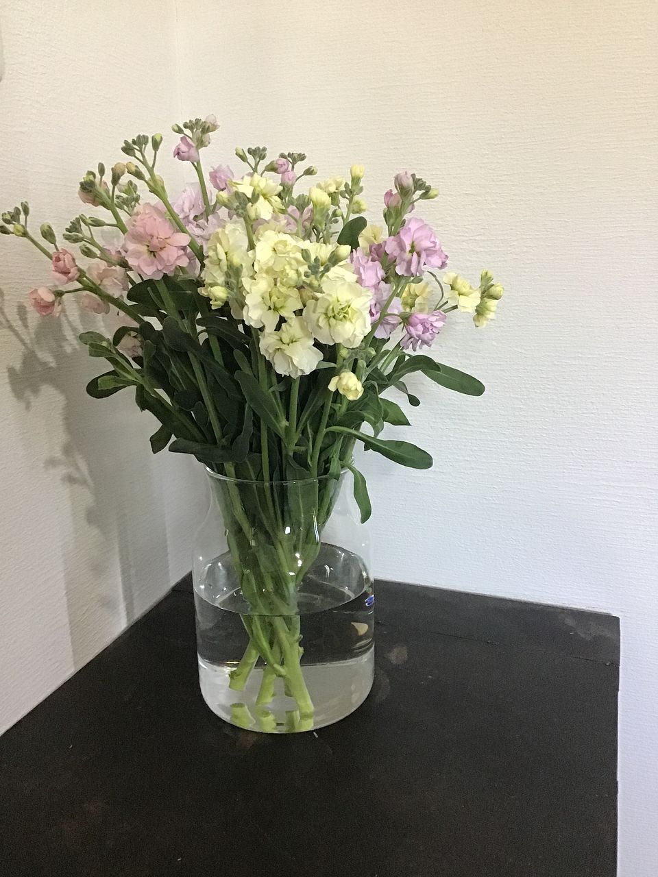 何も問題はないですが、ストックって野生的な花ですね。まとめるのが少し難しい花でした。 でも力強く存在してます。