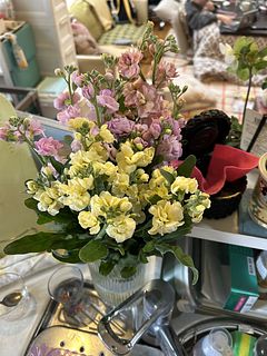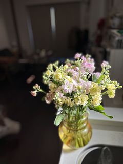 すごく元気でボリュームたっぷり。箱を開けるといい香りがしました。大きな花瓶がなかったので2つに分けて飾リました。ひとつはストックメインで。もうひとつは前回オーダーしたフリージアと一緒に。家の中はもう春です!