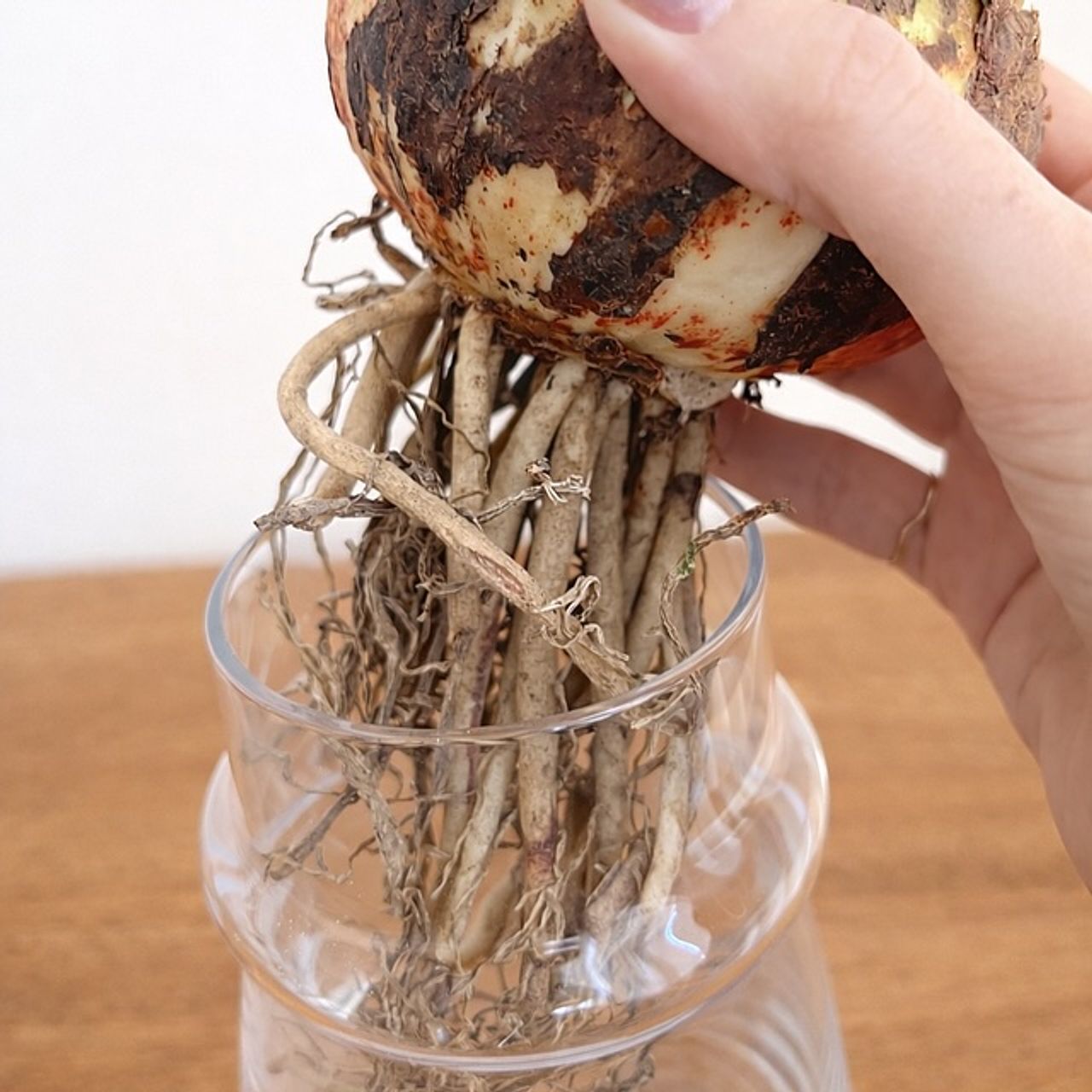 太い根っこは切らずにそのままでOK。根っこに含まれていた水分も開花に必要なエネルギー💪開花が進むにつれて、自然と細くなりなくなっていきます。太い根はカットせず、ポロポロと自然に落ちていくのをお待ちください。