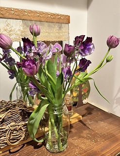 淡い紫を中心に丸みのあるチューリップとふんわり軽やかなスイートピー。