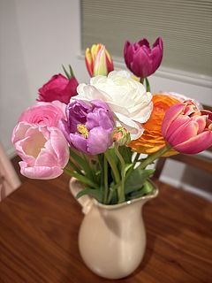 部屋に飾ると、春が来たような色合いで素敵です。ただチューリップもラナンキュラスもほぼ咲いた状態で届くので、暖かい部屋に飾ると長持ちはしなさそうです。