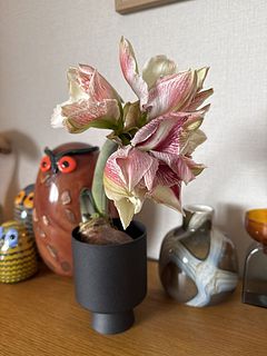 可愛らしいアマリリスが届きました✨ これからがとても楽しみです♡ 自分用と親友へ誕生日プレゼントとしても購入しました。お花や植物が好きだけど、お世話に自信がない親友がとても喜んでくれました。親友と一緒に育てる経過を楽しむ予定です✨ありがとうございました。 届いて1ヶ月ぐらいで開花しました♡ 2番花も成長中✨