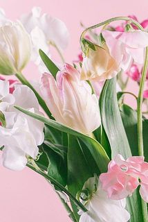 ペールトーンのチューリップとスイートピーのやわらかな質感に、ピンクスターの鮮やかなピンク色が魅力的💞