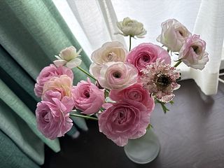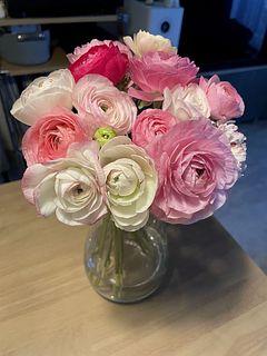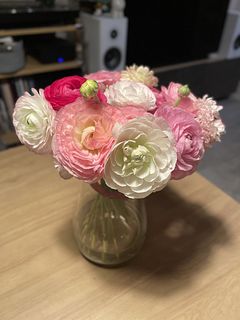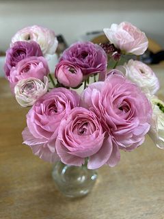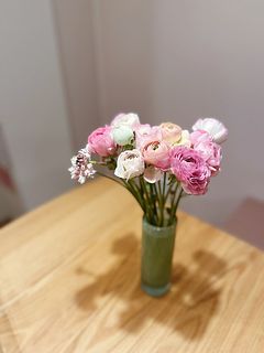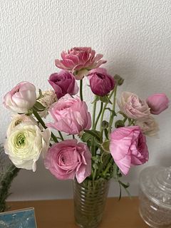 ラナンキュラスが大好きで毎年この時期を楽しみにしてます!ツボミが少し開いた状態だったけど、できるだけ長く楽しみたいので涼しいとこに置こうと思います。