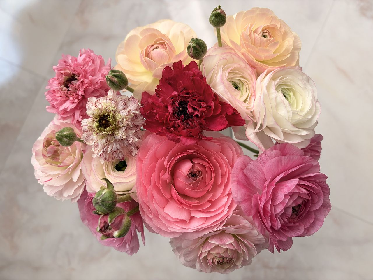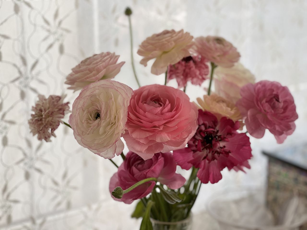 とにかくかわいい!いろんなピンク、いろんなカタチのラナンキュラスがたっぷり入っていて、いくらみていても飽きない感じでした! 保ちはそれぞれでしたが、最後の一本まで楽しめました!