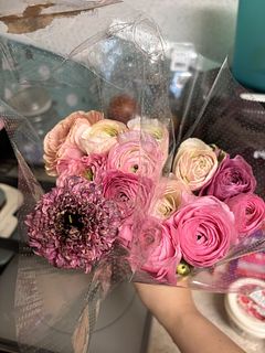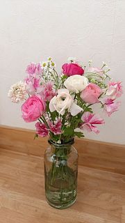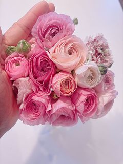 可愛らしいピンクの組み合わせが届きました🩷 ただ購入時のイメージ写真からもう少し大きなサイズのラナンキュラスを想像していたので小ぶりサイズが少し残念です🤲✨前回Mmas時にオーダーした真紅花から、今回のピンクに変わった玄関は少し早い春を感じられるようになりました💐✨
