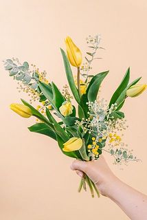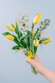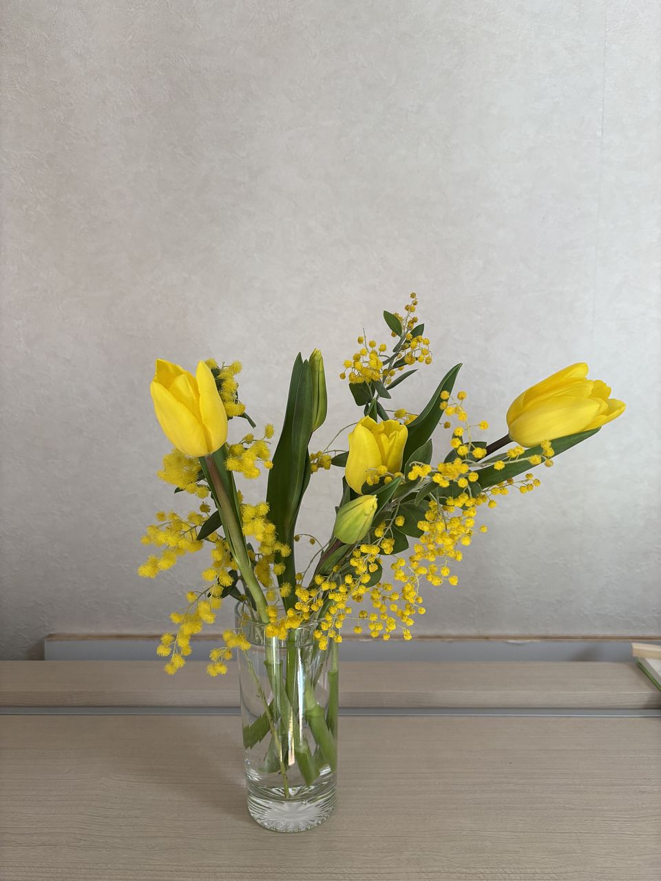まんまる愛らしいパールアカシアと黄色のチューリップのフレッシュブーケ💛