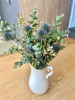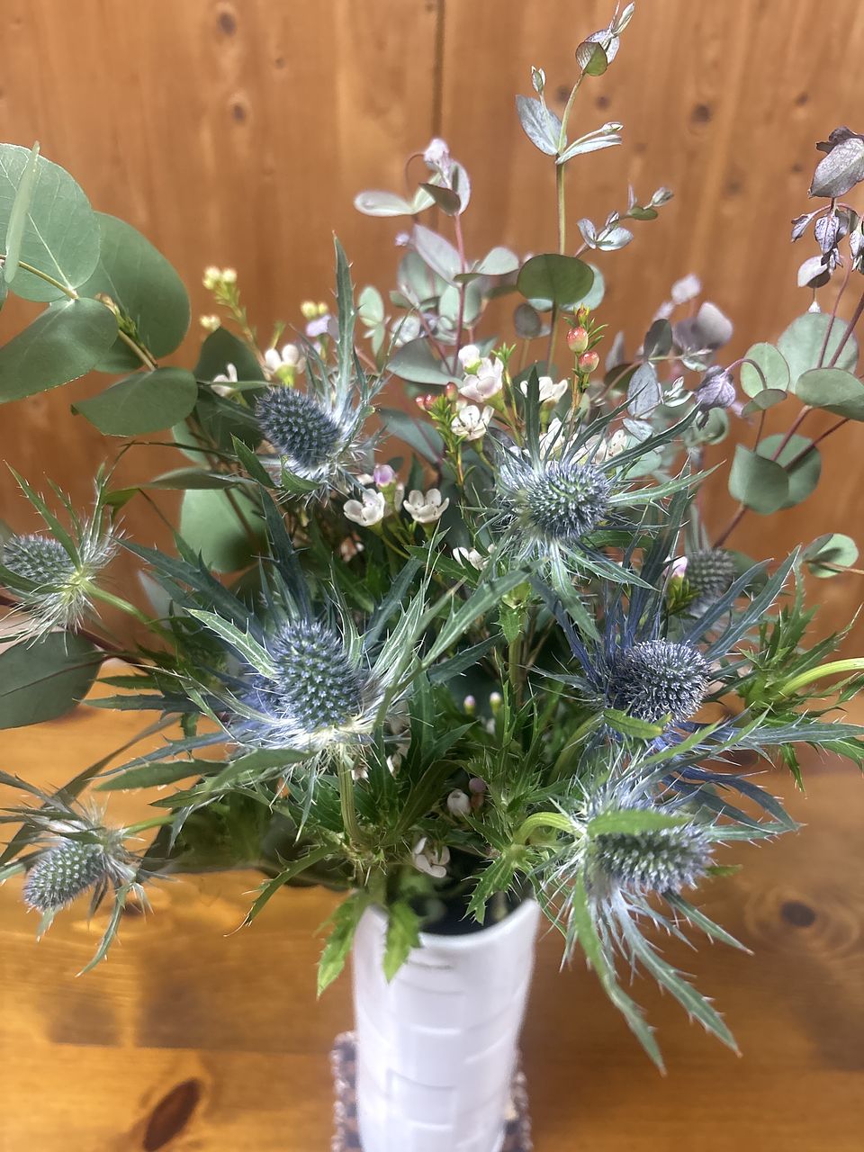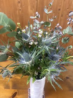 ちょっとシックなエリンジウムの色が素敵です。クールなエリンジウムと可愛らしい小花の対比が良い感じです。ボリュームもちょうど良かったです。