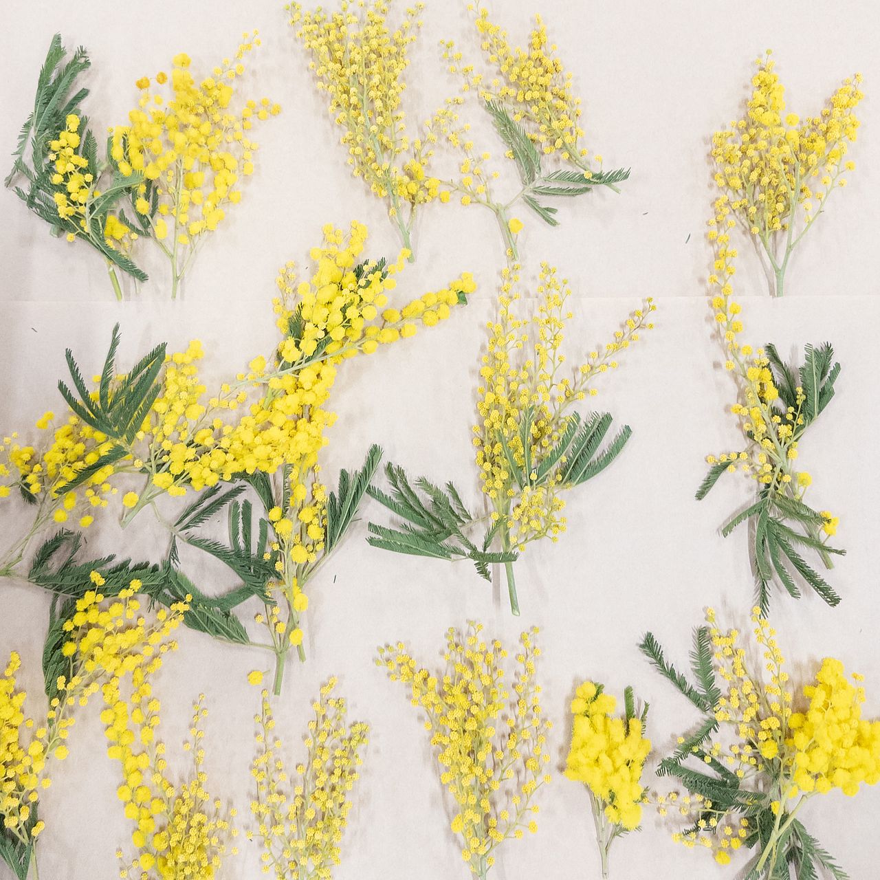花材を3〜5cm前後に切り分けます。多少長いのや短いのがあってもOK ※今回ミモザの種類は写真と異なります