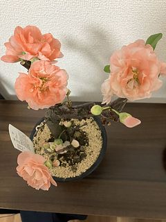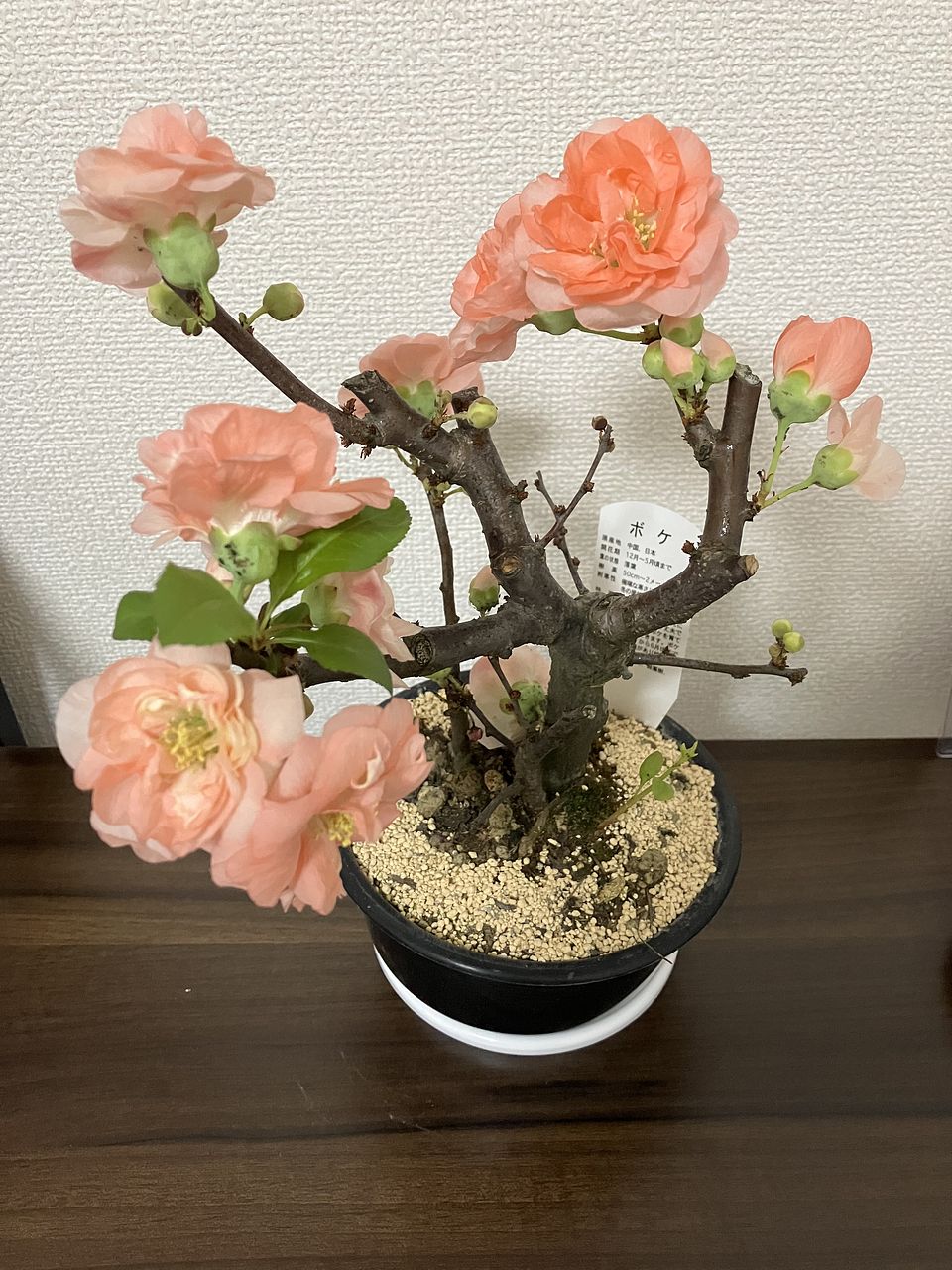 とても可愛らしいぼけの花が鉢で届きました♪ いつも敏速な対応に感謝しております。
